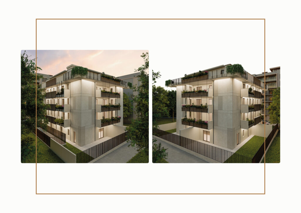 Il complesso residenziale dallo stile contemporaneo prevede soluzioni tecnologiche caratterizzate da sostenibilità energetica, privacy e dialogo integrato e flessibile con le preesistenze.